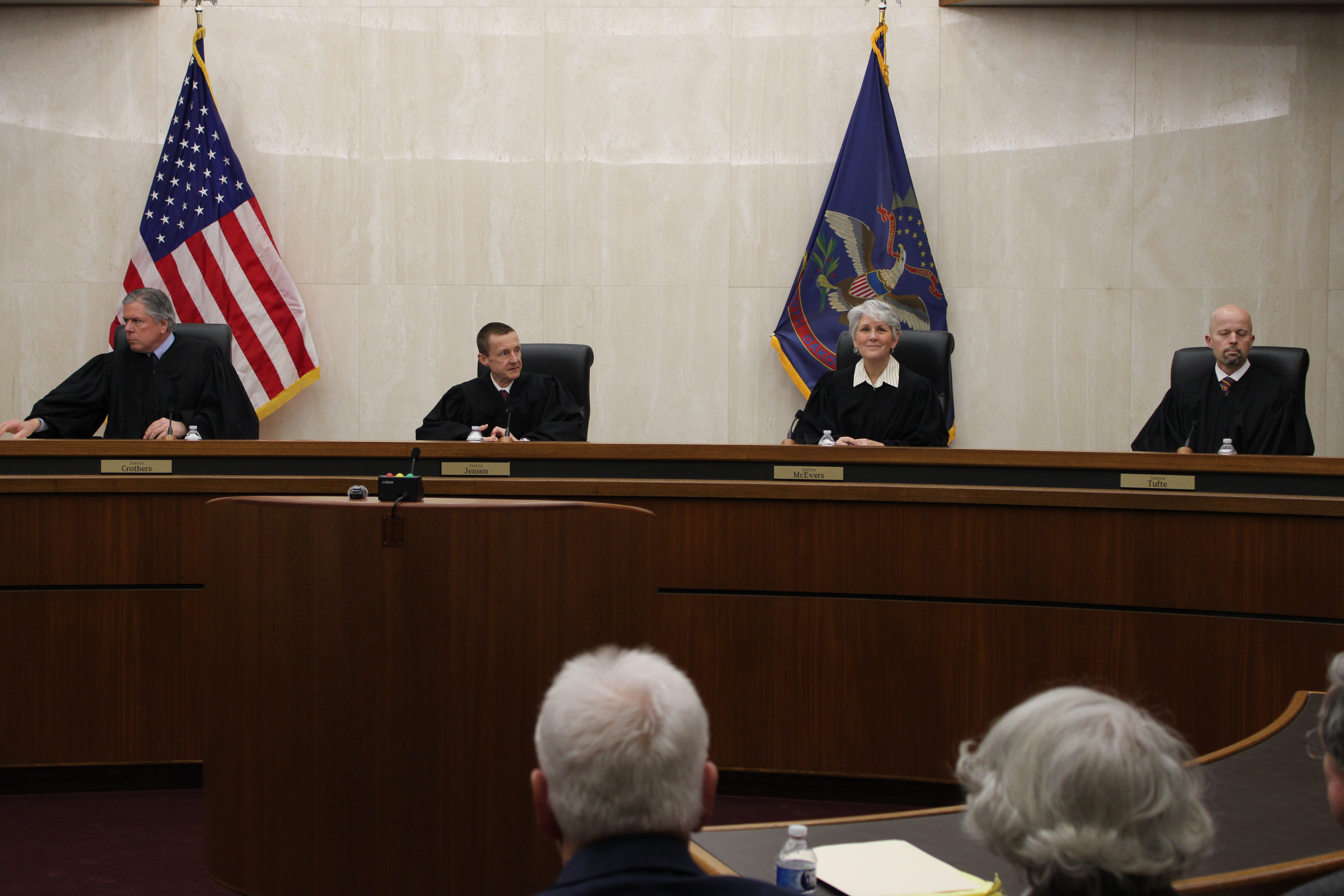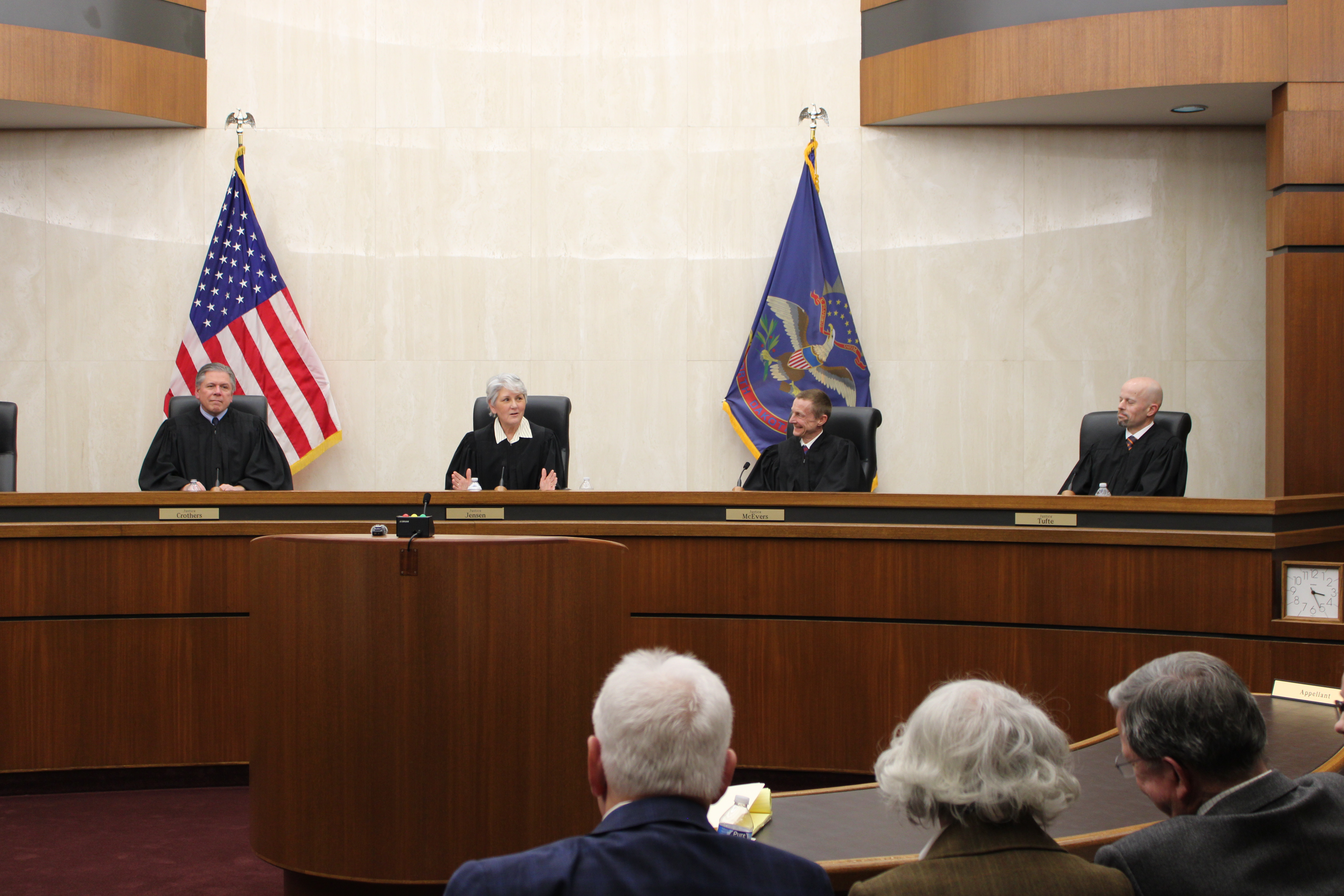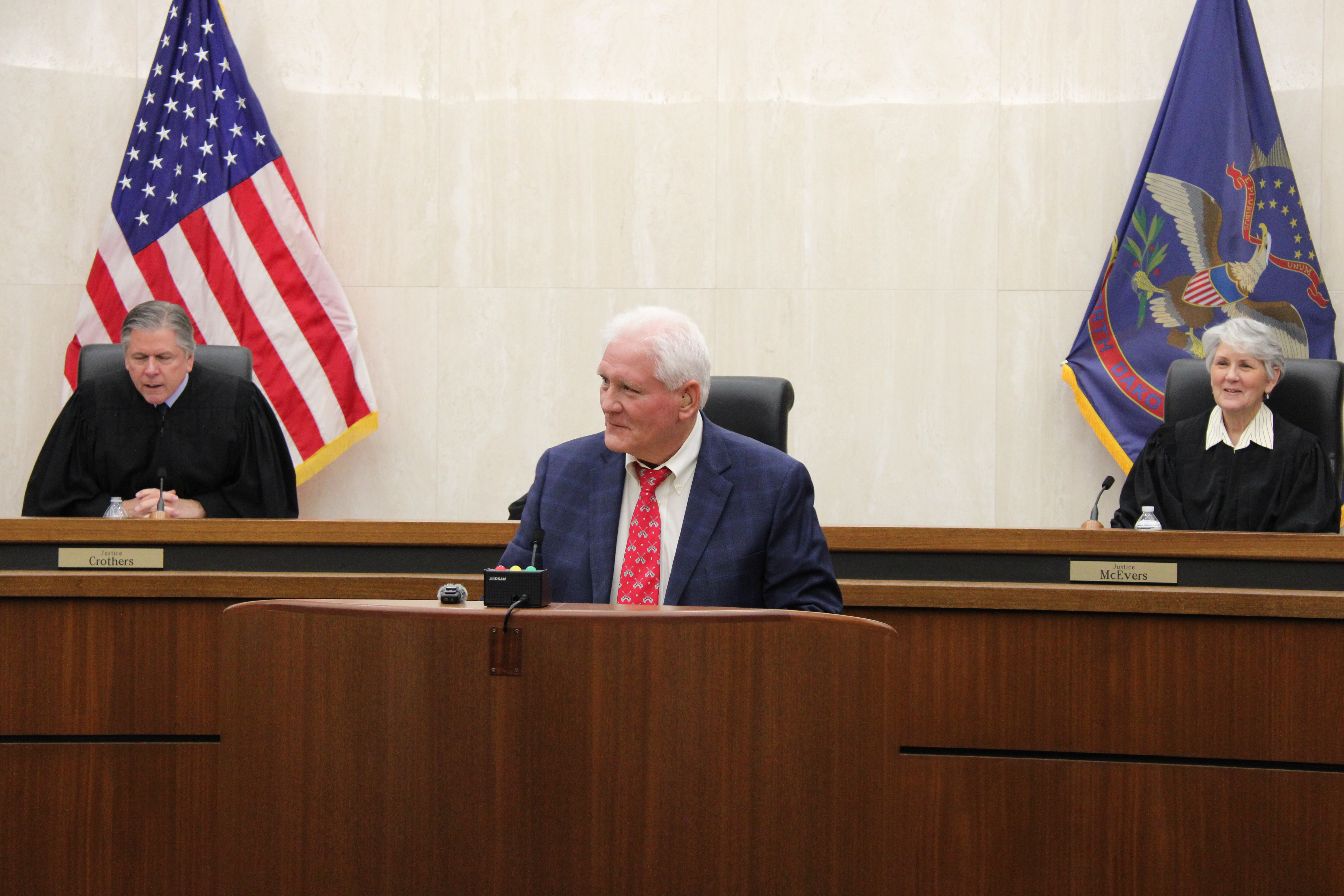 Former Chief Justice Jon J. Jensen welcomes attendees to the Passing of the Gavel ceremony.